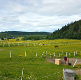 Tanken var att idag gå ca 4 mil, men jag var tvungen att bryta efter 23 km då knät inte ville samarbeta. Det blev några varma timmar och ett fint möte med en rävunge (jag valde att inte försöka hinna ta ett kort utan fokuserade på själva mötet). Jag mötte även en grupp ryttare som hälsade glatt vid Morsjön, men i övrigt mötte jag ingen.