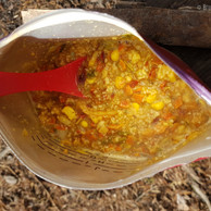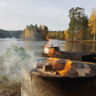 Åh, vilken härlig tur det blev idag upp till Abborrtjärn där jag gjorde lunch. Jag följde Bruksledens etapp 15 av, bredvid och på och tog lunch i början på etapp 14 vid mitt favoritställe. Jag värmde vatten över öppen eld och åt Blå Bands vegetariska chilikryddade couscous. Jag gillar inte couscous men madre mia vad god denna var och så smidigt att bara ha på hett vatten och sen äta efter 10 minuter.