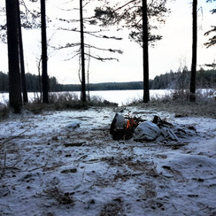 Jag hittade en stig och kom en bra bit men tyvärr tog det stopp (syns på GPX;en längre ner på sidan). Jag försökte gå upp en bit för att hitta en ny stig längre upp utan framgång. Jag var tvungen att vända och gick tillbaka till den grillplats jag stött på tidigare. Detta ställe var nytt för mig så nu har jag alltså hittat 4 stycken eldstäder hittills. Kom nära en liten ö där det också fanns en grillplats men jag ville inte ut på isen.