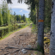Jag följde etapp 24 fram till Kolningberg där jag sedan valde grusvägen till vänster istället och förbi Stora Malmtjärn. Det kändes i hela benen vid det här laget och jag tänkte att detta kommer nog inte gå... Det var varmt och jag vore dum om jag pressade mig något mer...