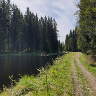 Men väl framme vid Kallmorberget så insåg jag att det skulle bli för långt, tittade på kartan och valde att ta in på en skogsväg som även den skulle ansluta till etapp 25. Det var nog ett klokt beslut så här i efterhand... Jag tog in alldeles vid Djupkärra-Dammsjön, en otroligt fin sprickdalssjö.