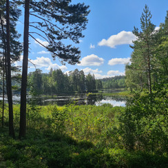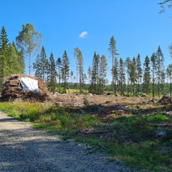 Nedanför Orrberget stannade jag till och tog lite käk i skuggan och massa vatten. Fortsatte fram på grusvägen och vek in mot Stora Mörttjärn och sen Bruksledens etapp 14 fram till Abborrtjärn. Stannade till vid Lilla A. och käkade igen, blötte huvudet och svalkade mig i skuggan innan de sista 11 km hem via Jönsbacken och Hedkärra.