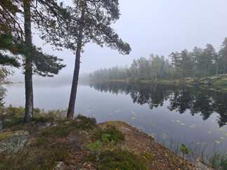 …sammanfattar dagens sköna 20 km i dimma som idag gick till Stora Malmtjärn på vandringens dag.